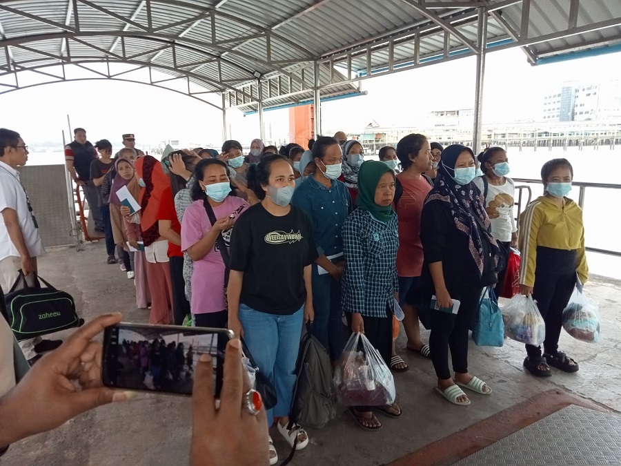 Tanjungpinang – Badan Pelindungan Pekerja Migran Indonesia (BP2MI) memfasilitasi pemulangan sebanyak 150 Pekerja Migran Indonesia (PMI) ilegal dari Kuala Lumpur, Malaysia, pada Selasa (28/01/2025). Para PMI ini datang menggunakan kapal Allya Express 3 yang bersandar di Pelabuhan Internasional Sri Bintan Pura Tanjungpinang pada pukul 16.00 WIB.