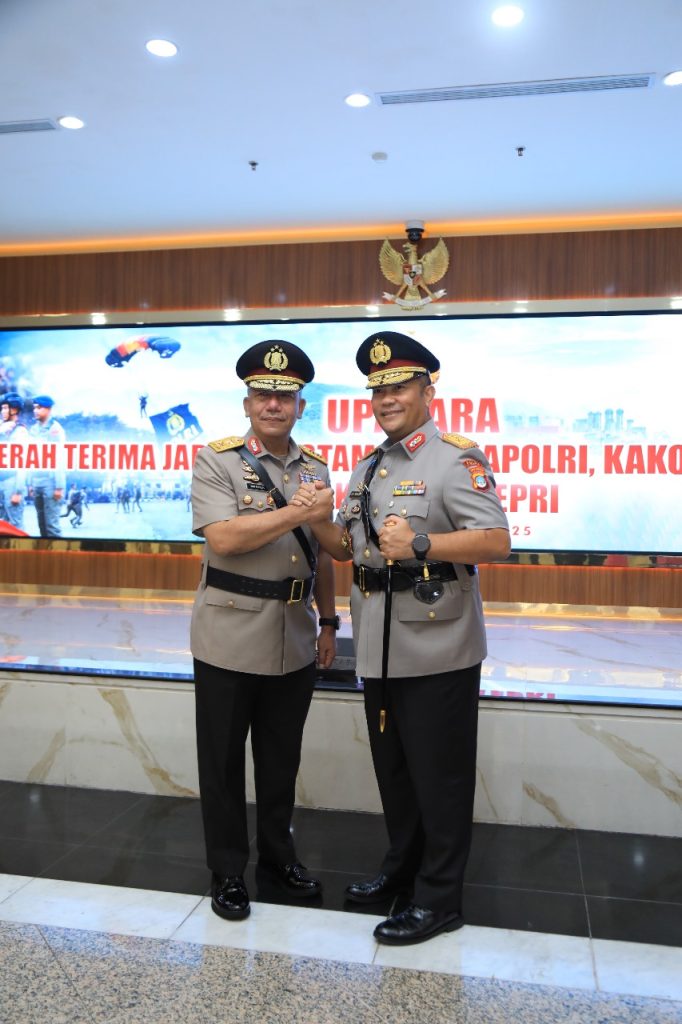 Batam – Kapolri Jenderal Polisi Drs. Listyo Sigit Prabowo, M.Si., pimpin upacara serah terima jabatan Kapolda Kepri bertempat di Rupatama Mabes Polri Jalan Trunojoyo, Jakarta Selatan berdasarkan Keputusan Kapolri nomor : KEP/183/I/2025 tgl 31 Januari 2025 tentang pemberhentian dan pengangkatan dalam jabatan di lingkungan Polri serta Surat Telegram Kapolri Nomor ST/200/I/KEP./2025, tertanggal 31 Januari 2025, tentang alih tugas jabatan dan mutasi. Ucap Kabidhumas Polda Kepri Kombes. Pol. Zahwani Pandra Arsyad, S.H., M.Si., Sabtu (1/2/2025).