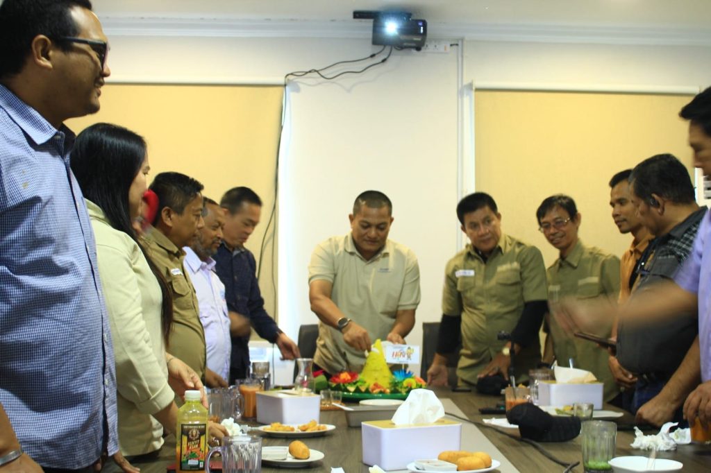 Ketua SMSI Kepri Rinaldi Samjaya memimpin langsung pemotongan nasi tumpeng secara serentak bersama SMSI se-Indonesia.